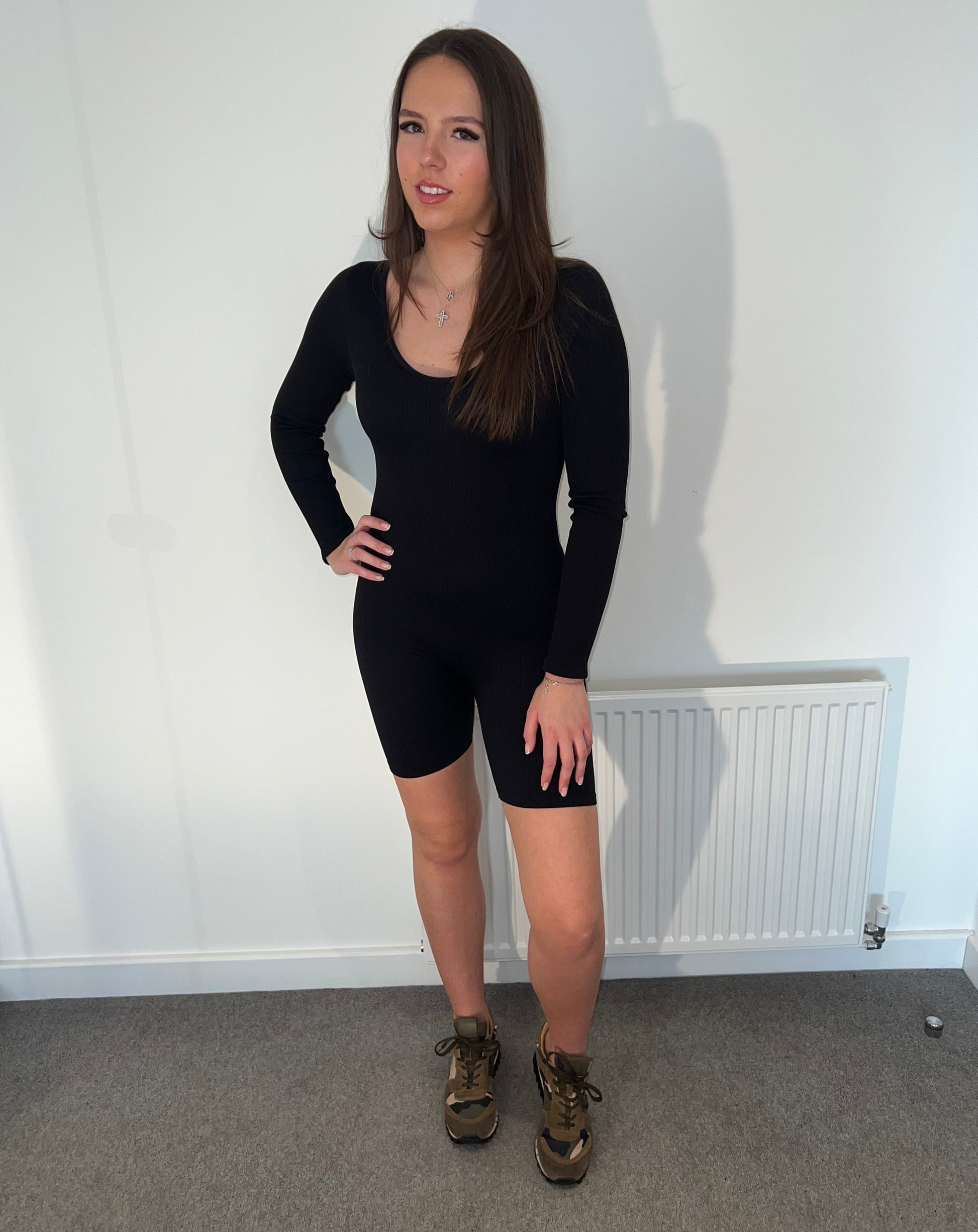 Black All In One Bodycon style ribbed suit