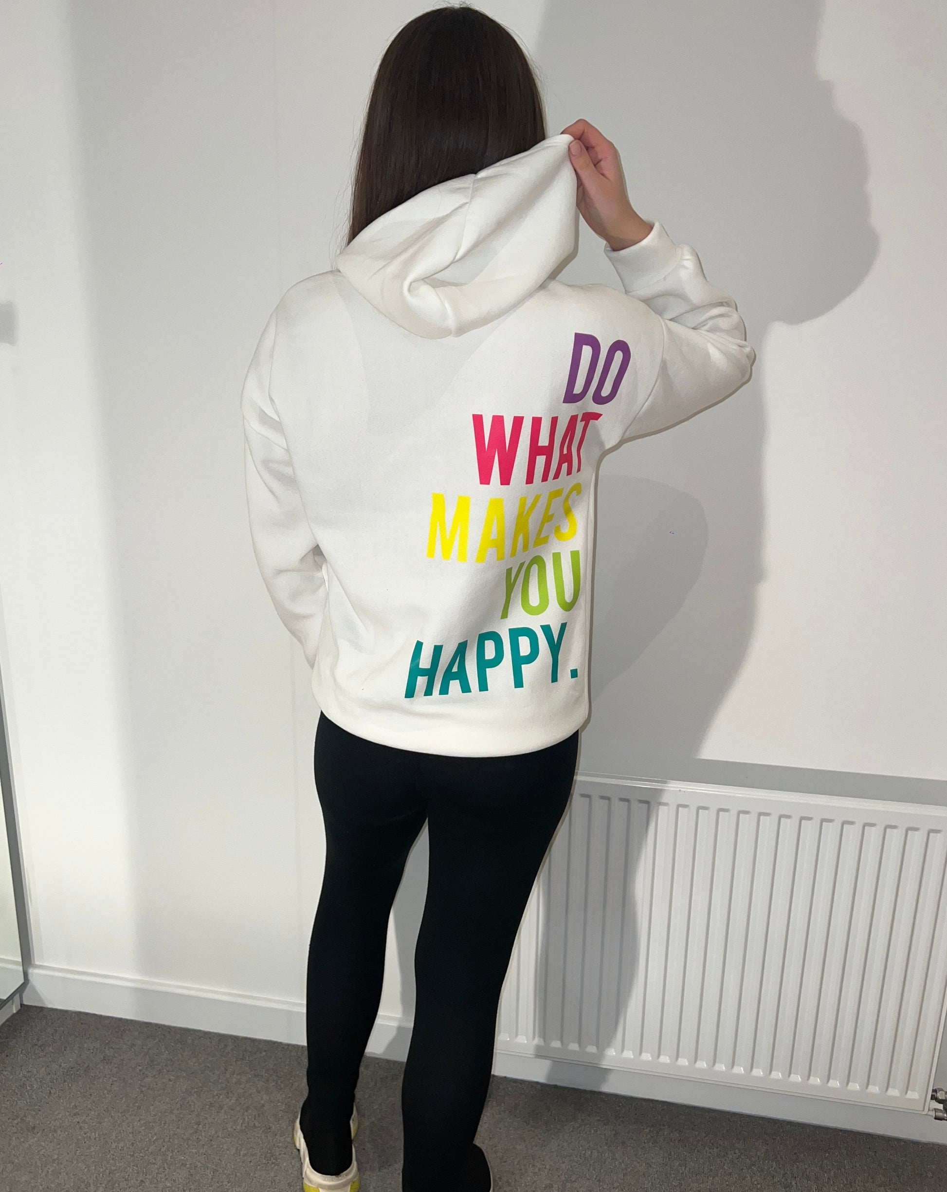 Cream With Multi Colour Writing Do What Makes You Happy Hoodie
