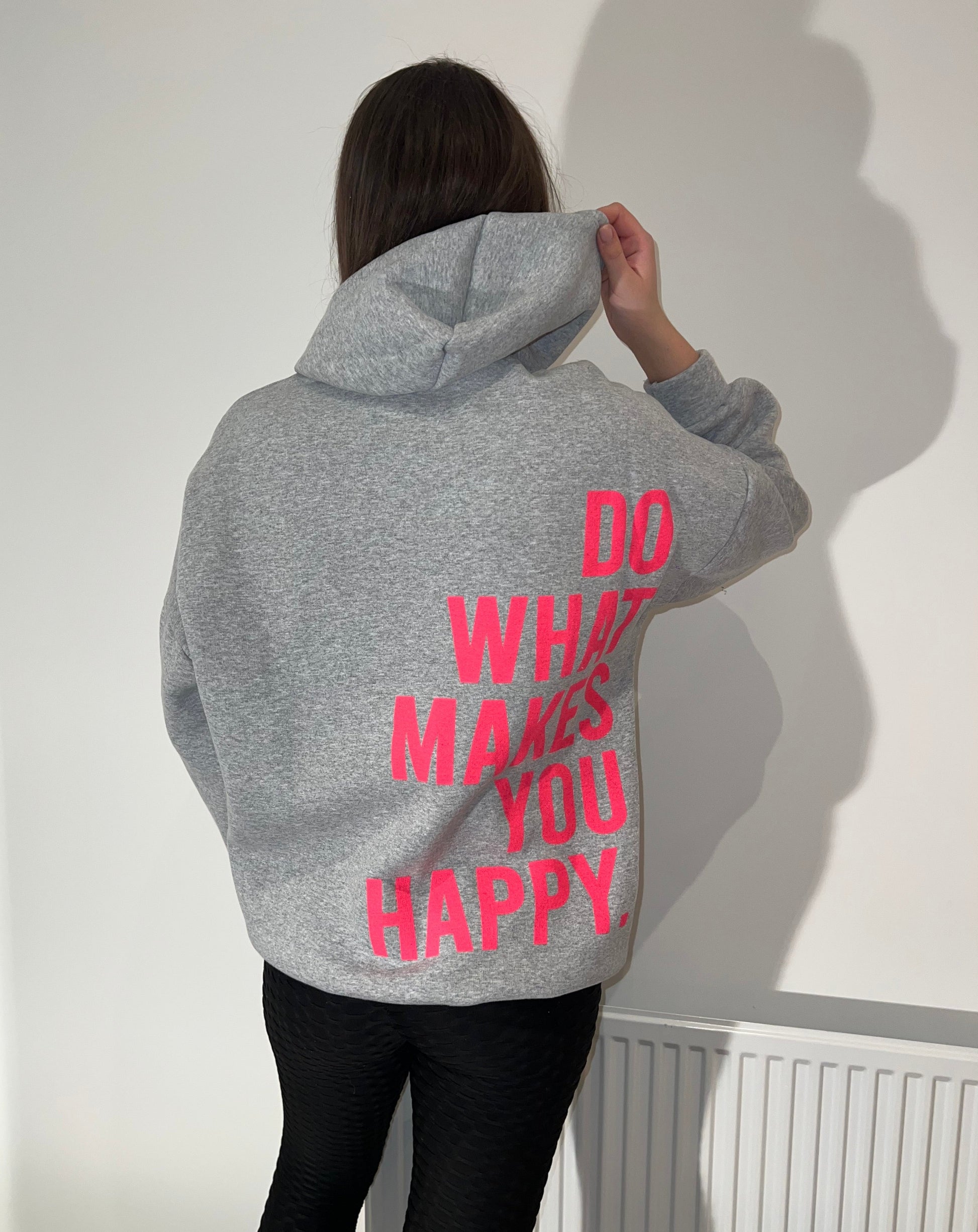 NEW Grey With Pink Do What Makes You Happy Hoodie